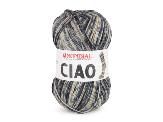 Mondial Ciao (100) гр. - классическая носочная пряжа из смеси  шерсти и полиамида  с довольно высокой круткой, которая обеспечивает прочность и долговечность изделий