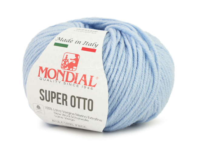Mondial Super Otto (50) гр. - очень мягкая и теплая пряжа из 100% мериноса. Эта  нежная, неприхотливая в работе пряжа, из которой получаются отличные детские вещи, свитера и кардиганы, и она будет замечательно смотреться в шарфе или легкой шапке.