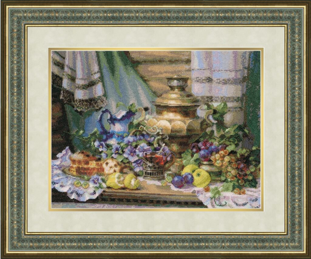 Осеннее изобилие станет символом изобилия и достатка в вашем доме, и обязательно притянет только хорошее. Щедрый стол, ломящийся под дарами осени, манит присесть и отдохнуть после праведных трудов, и расположиться с чашкой ароматного чая из светящегося уютом самовара. Фрукты и ягоды в натюрморте символизирует, радость, веселье, благосостояние.Россия: